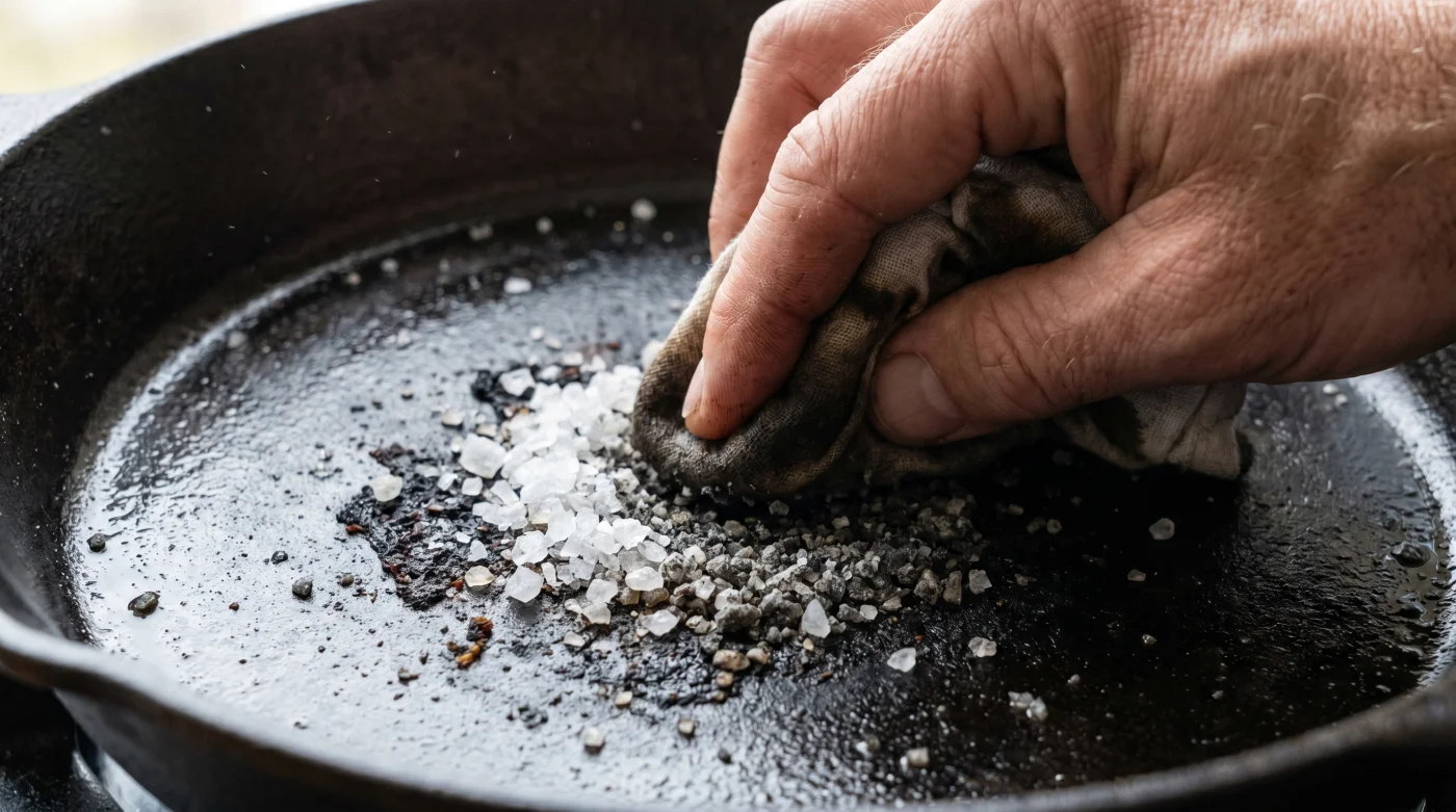 Consider Arthur, a 54-year-old head chef at a bustling gastropub in rural Yorkshire. Every Sunday, his kitchen pushes out hundreds of charred Yorkshire puddings and seared cuts of beef using a small fleet of battered cast iron skillets. He does not own wire wool or expensive chainmail scrubbers. When the service ends, Arthur simply throws a handful of coarse Cornish sea salt into the still-warm pans, grabs a folded cloth, and scrubs in tight circles until the black debris lifts away. He finishes with a brief rinse, dismantling the myth that these pans need constant pampering.