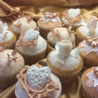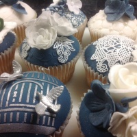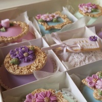 Sugar paste domed cupcake £3.50. Butter cream swirled cupcake from £2.50. These can be used for Wedding Favours, presented in clear presentation boxes, (display boxes are extra)